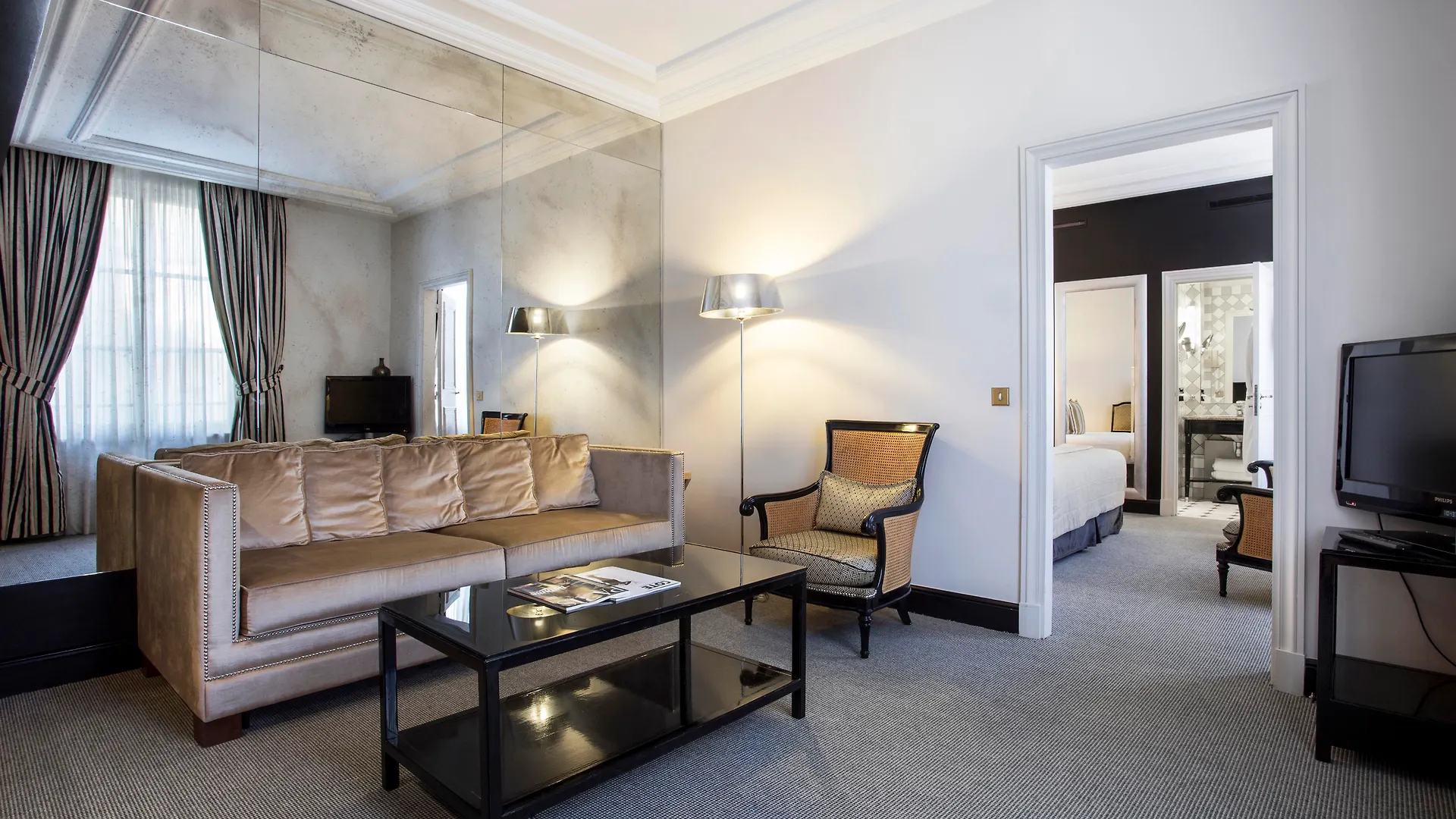 Alcune delle camere in stile contemporaneo del Castille Paris – Starhotels Collezione offrono vista sul cortile e dispongono di un patio e un balcone. Gli ospiti possono usufruire di un minibar e connessione Wi-Fi gratuita e un televisore. I bagni sono dotati della combinazione doccia/vasca, nonché di comfort quali accappatoi.